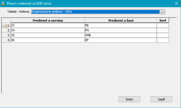 Dugmetom "Mapiranje podataka" treba otvoriti prozor za parove vrednosti, koji se koriste za mapiranje ID-jeva objekata (StoreID prodavnice) iz sistema CardPrint sa šiframa org. jedinica u Calculusu, (vidi sliku).