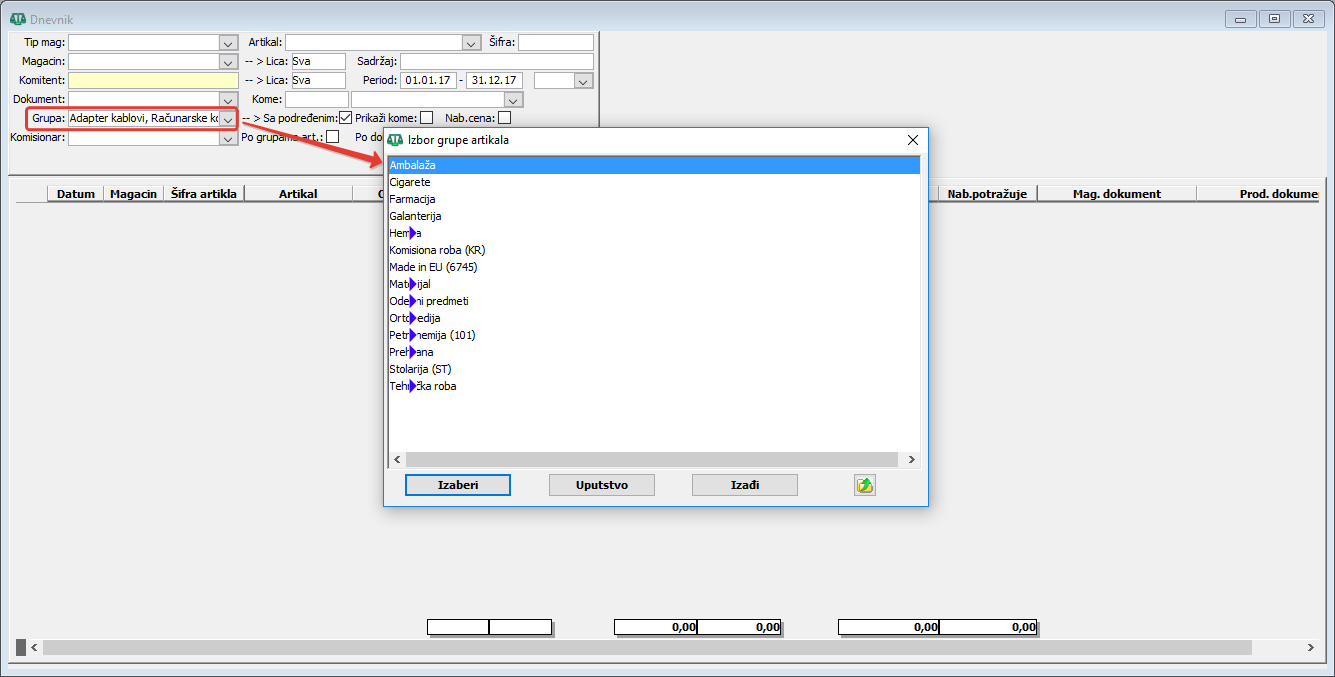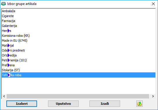 Izbor po hijerarhiji grupisanih artikala.