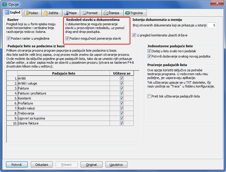 Ali ovo ima i svojih mana, jer da biste dobili ovakav komfor, morate da izgubite na drugom mestu. Sve padajuće liste koje se nalaze u jednom prozoru, učitavaju podatke iz baze prilikom otvaranja prozora. Učitavanje velikog broja podataka iz baze je najdugotrajnija operacija u programima, pa stoga nekim prozorima treba dosta vremena da se otvore. Ali posle toga su vam podaci stalno dostupni u obliku liste. Više o tome pročitajte u poglavlju Osvežavanje padajućih lista u Calculusu 12.