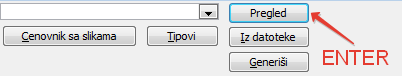 Ukoliko je neko slovo dugmeta podvučeno, ono predstavlja prečicu (Shortcut). To dugme, osim mišem, može da se aktivira kombinacijom tastera Alt i tog slova. Na primer Alt + A za Ažuriraj cenovnik