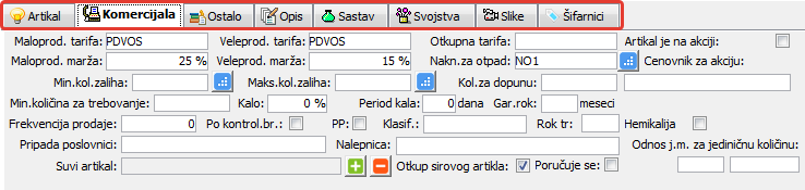 Unutar jednog prozora uvek je aktivna jedna kontrola. U našem primeru je aktivan listić "Artikal" a u okviru listića aktivno je polje "Naziv:". To znači da ona prima komande sa tastature i obavlja ili omogućuje obavljanje određenih operacija. Svaka kontrola može da se aktivira mišem ili tastaturom. Taster Tab na tastaturi prelazi sa jedne kontrole ili polja na drugu, određenim redom koji je unapred programski definisan, krećući se "u krug", tj. kada dođe do poslednje kontrole vraća se na prvu.