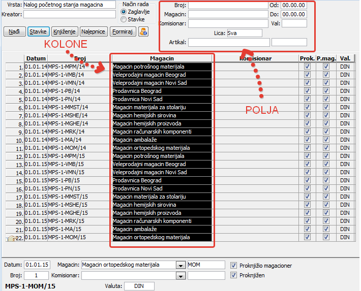 Kontrole koje služe za unos podataka obično odvajamo od ostalih kontrola i nazivamo ih poljima ili kolonama, tako da ćemo u daljem tekstu uputstva naziv kontrola koristiti u užem smi sl., odnosno za sve ostale kontrole koje ne služe za unos podataka.
