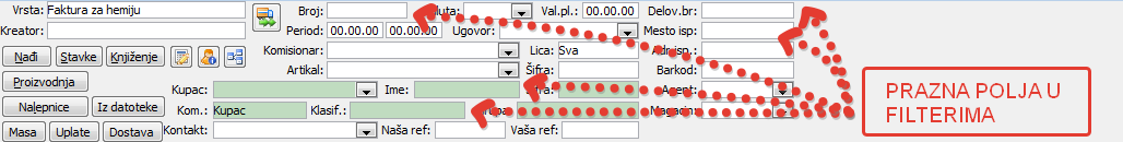 Prazna polja.Drugi primer su polja u filterima, gde prazno polje znači da po tom polju ne želimo da postavljamo kriterijum za pretragu, a vrednost nula znači da postavljamo takav kriterijum gde je vrednost nekog podatka nula (vidi sliku)