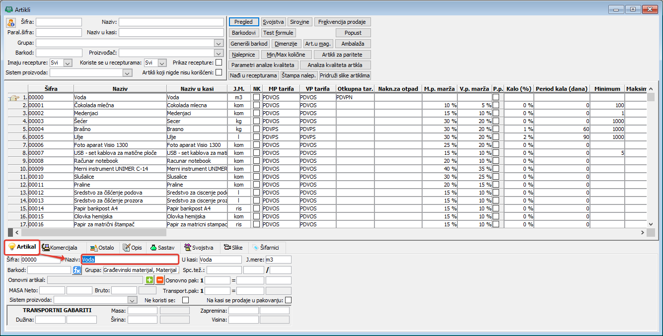 Nikada nemojte unositi blanko znak (razmak) kako biste u Calculus 12 uneli naziv artikla koji već postoji u bazi podataka. Naziv će razlikovati program i verovatno vi, ali vaše kolege sigurno neće videti razliku što može dovesti do pogrešnog fakturisanja ili naručivanja robe. Bez obzira na isti naziv artikla, svaki od njih poseduje atribut, osobinu ili svojstvo koje ga odvaja od drugih. Iskoristite to i kreirajte artikle sa istim nazivom i pridodatim nekim od atributa itd. Na primer "Dugotrajno mleko 1l 2,5% Imlek" i "Dugotrajno mleko 1l 2,5% Zdravo" su artikli istih karakterstika ali atributi "Imlek" i "Zdravo" ih jasno odvajaju.