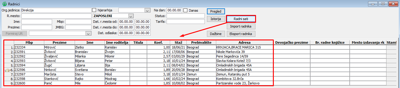Ukoliko izlistani redovi sadrže i radnike za koje se ne evidentiraju radni sati, njih možete ukloniti kasnije, u samom prozoru za evidenciju radnih sati.