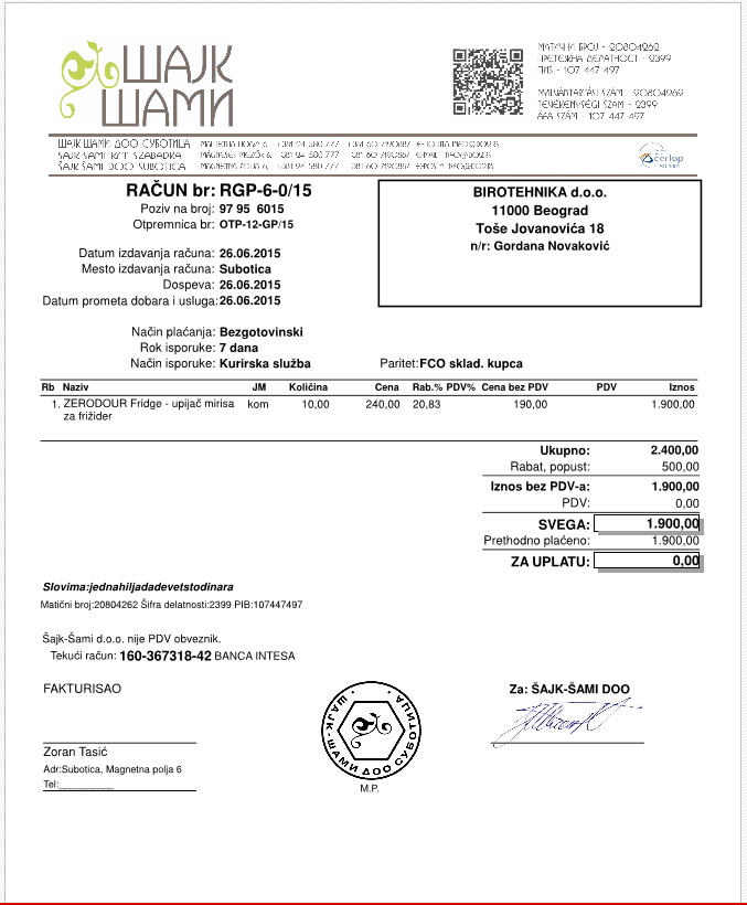 . Međutim, da biste zaista dobili takav štampani dokument, za njega mora biti posebno kreirana štampa po porudžbini. Takvi dokumenti su praktično uvek specifični od firme do firme i nemoguće ih je unapred predvideti u programu. O štampi na drugim jezicima pročitajte deo uputstva: Jezik za štampu.