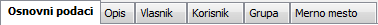 osnovni podaci o građevinskom objektu - "Osnovni podaci", opis građevinskog objekta "Opis", podatke o vlasniku objekta "Vlasnik",