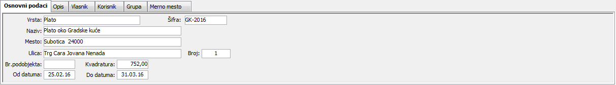 "Mesto:" - mesto u kome se nalazi građevinski objekat,