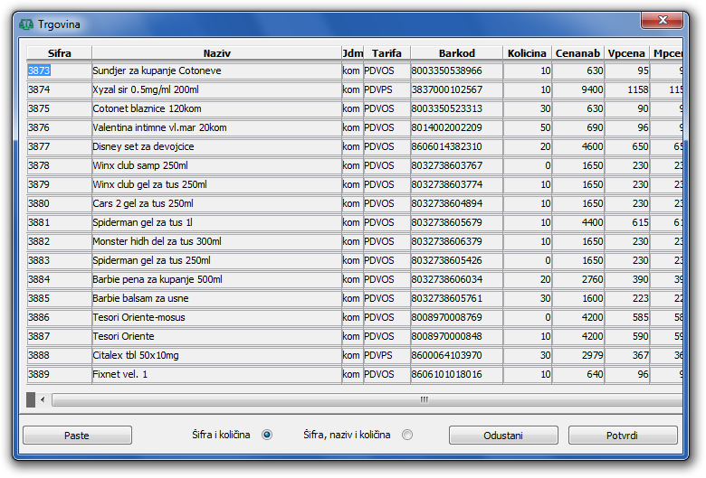 Naravno morate voditi računa da su polja Šifra artikla i Naziv artikla jednoznačni u bazi i da nije moguće učitati više artikala sa identičnim podacima.