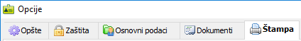 Datum štampe na svim dokumentima - na štampanim dokumentima u većini slučajeva se u gornjem desnom uglu prikazuju datum i vreme kad je dokument odštampan, što se može isključiti ovom opcijom;