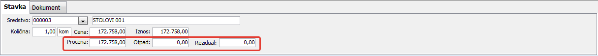 Po MRS (Međunarodni računovodstveni standard) unosi se pošteno procenjena vrednost osnovnog sredstva, vrednost otpada i rezidualna vrednost
