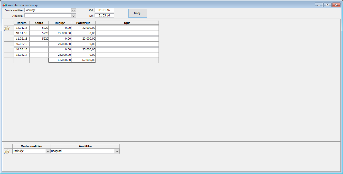 Vanbilansna evidencija - štampa vanbilansne evidencije.