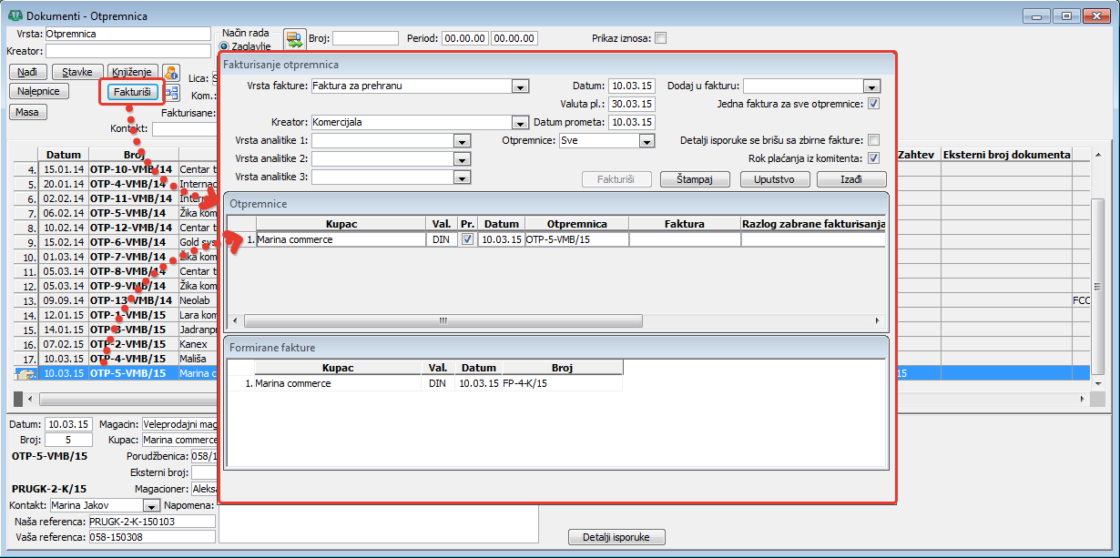 Formiranje i kjiženje "Otpremnice" iz "Fakture"..