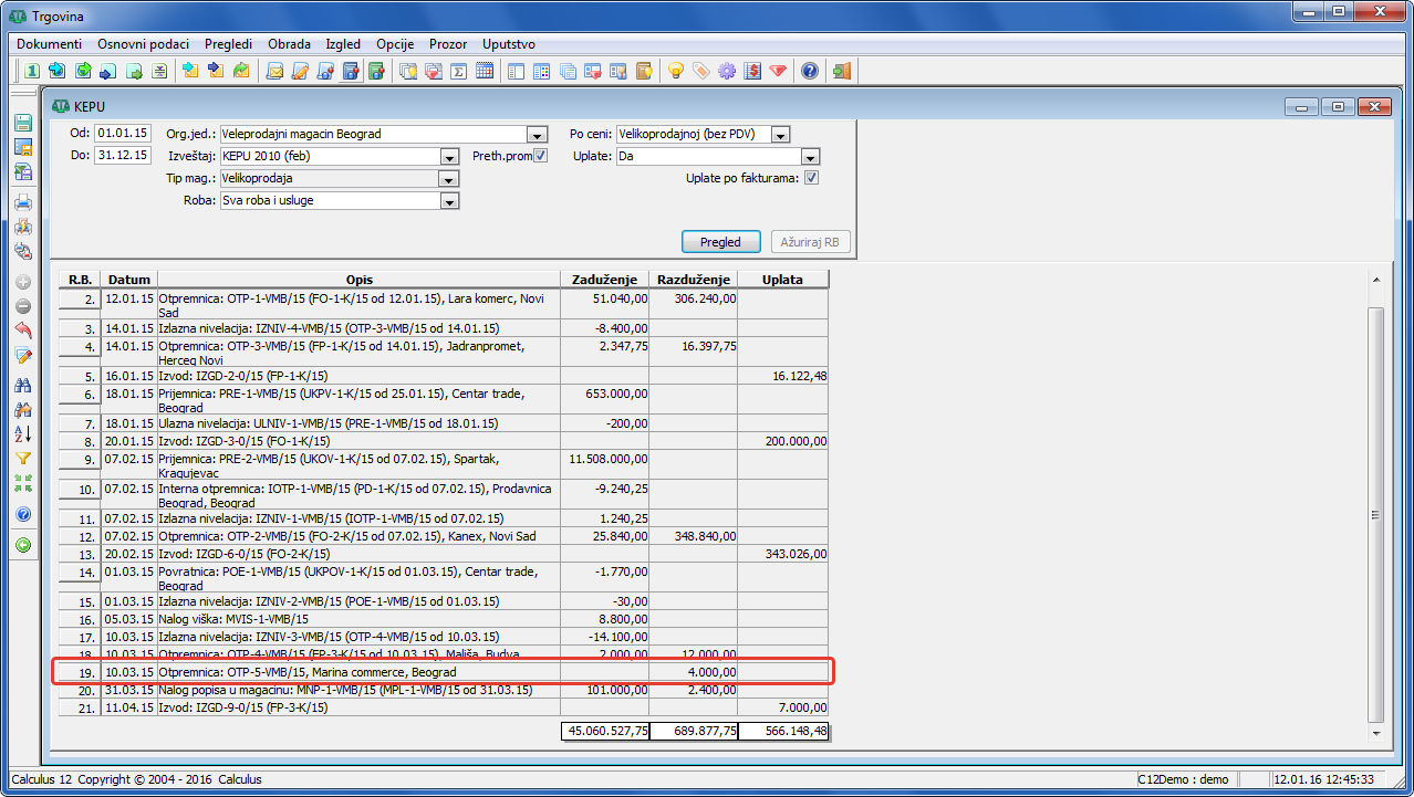 KEP knjiga (ranije KEPU) - vrednost otpremnice se prikazuje na strani razduženja u KEP knjizi (vidi sliku)