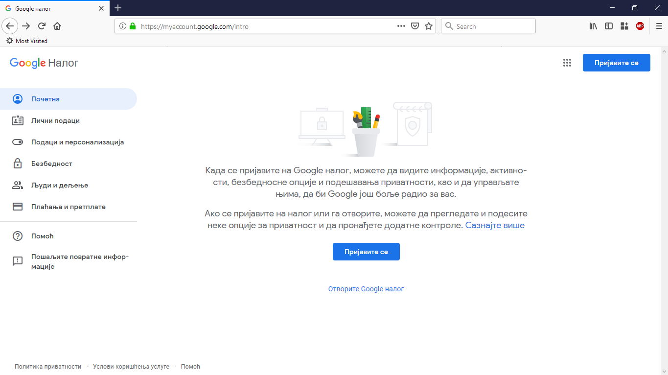 Prijavite se na Vaš nalog klikom na dugme "Prijavite se", (vidi sliku)