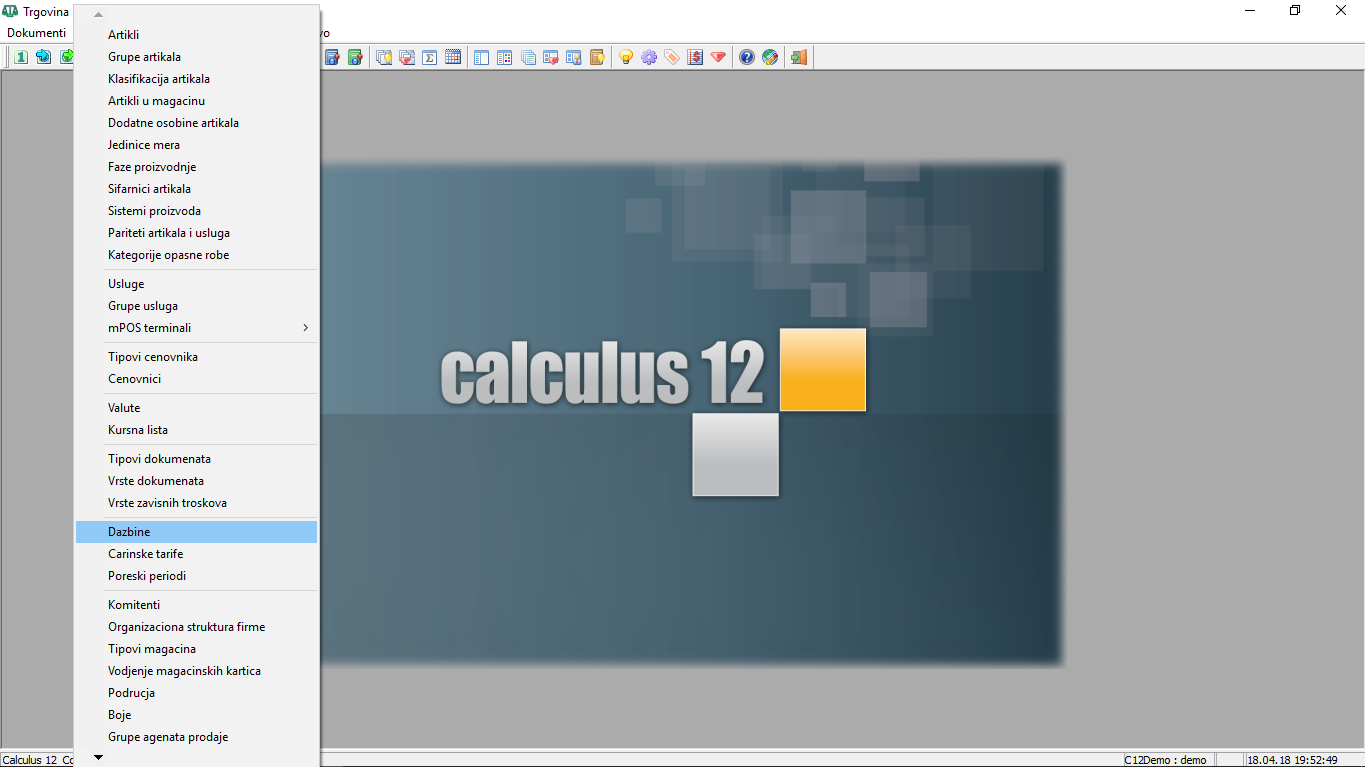 - Ući u Calculus 12, program Trgovina i iz glavnog menija birati "Dokumenti -> Otvori -> Nalozi -> Nalozi početnog stanja"