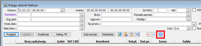 U KUF-u možete filtrirati preglede prema unetim raspodelama troškova dugmetom