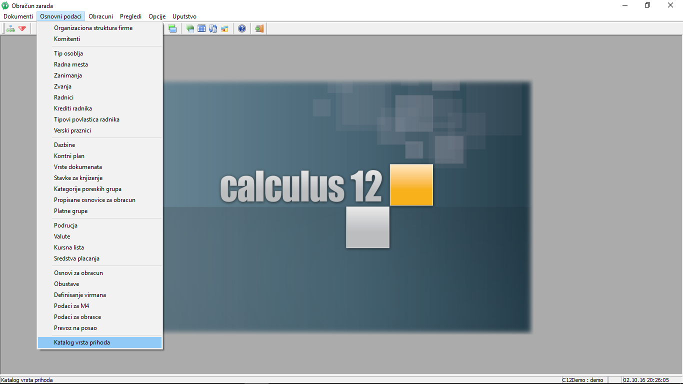 Zbog automatskog unosa u bazu podataka o olakšicama i kataloga vrsta prihoda neophodno je uraditi upgrade na najnoviju verziju Calculu 12 programskog paketa.