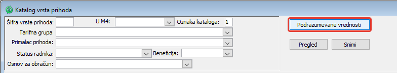 u kom će se u trenutku otvaranja videti podrazumevane vrednosti za selektovani red iz kataloga vrste prihoda, ( vidi sliku )