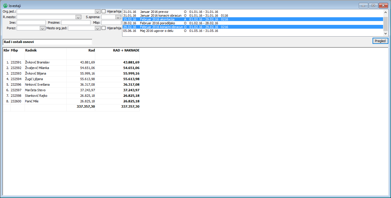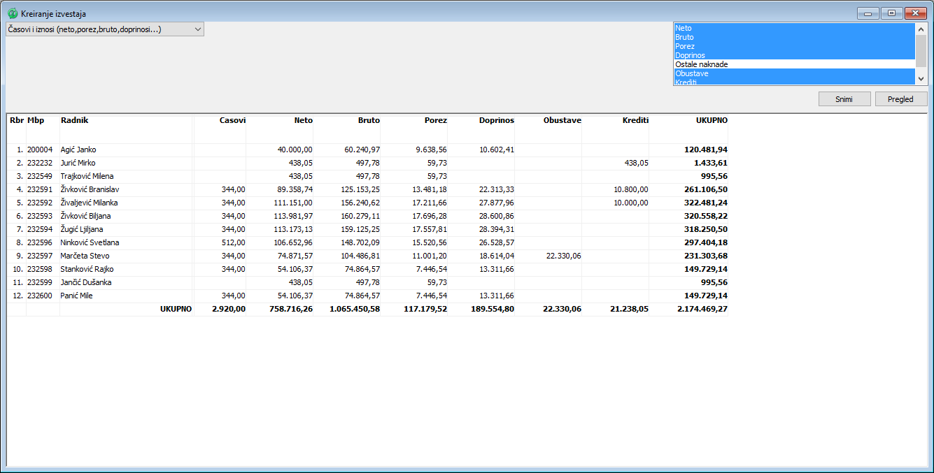 Kreiranje izveštaja iz obračuna zarada