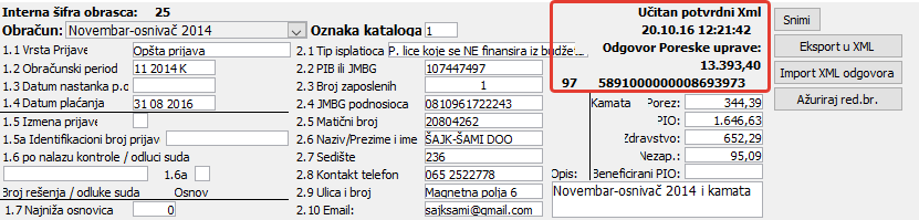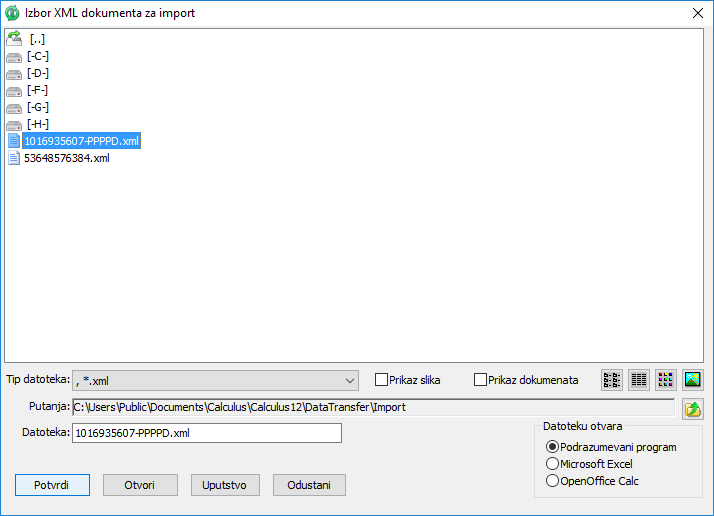 U slučaju da je odgovor od Poreske uprave potvrdan, potrebno je preuzeti sa internet elektronskog servisa Poreske uprave za podnošenje PPP PD prijava - "E-porezi" odgovarajući XML fajl i importovati ga u program. Import odgovora se radi u stavkama odgovarajućeg obrasca koji ima status "Eksportovan u XML", klikom na dugme "Import XML odgovora" otvara se forma za izbor fajla: