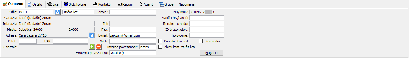 program otvara formu za definisanje komitenta ( vidi sliku )