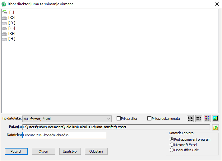 Klikom na dugme "Potvrdi", program će eksportovati PPP PD obrazac na izabranu lokaciju. Naziv fajla se automatski dodeljuje i isti je kao naziv obračuna od koga je nastao PPP PD obrazac.